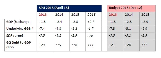 Comparison of SPU and Budget 2013 (Presented December ’12)