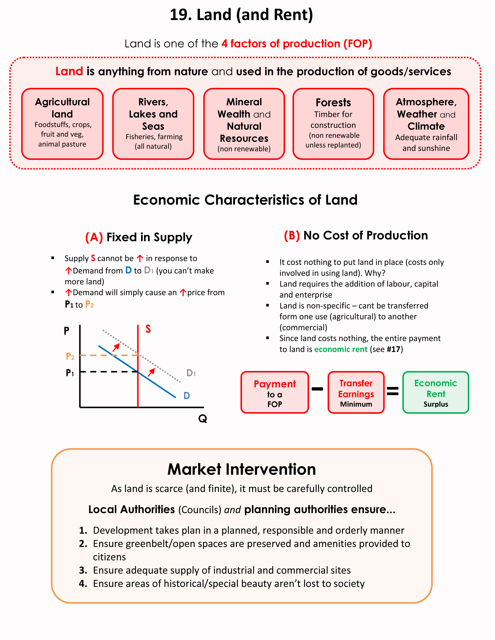 The 1st Factor of Production (FOP) we’ll go through is Land (and the reward for providing it, rent). Land is defined as anything supplied by nature and used in the production of goods/services i.e. forests, farmland, rivers, seas and mineral wealth.